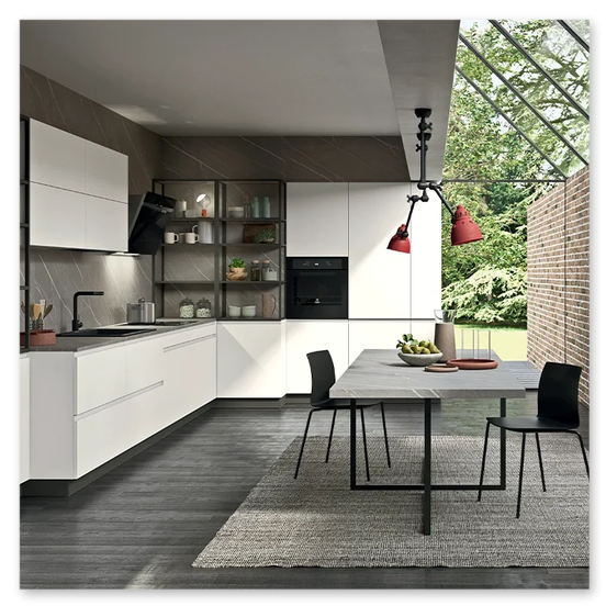 - Design su misura: lineare, angolare, con isola o penisola.