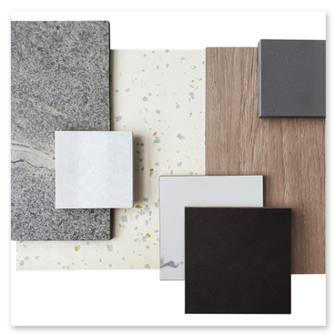 - Top: HPL antibatterico, quarzo resistente a macchie e graffi, massello per un look caldo.